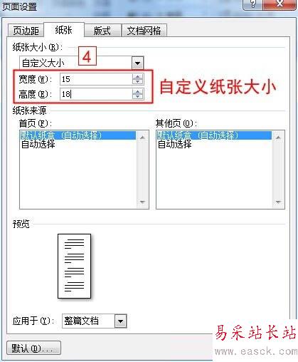 2、自定義紙張,【頁面布局】-【紙張大小】-【其它頁面大小(A)...】-【自定義紙張寬、高】