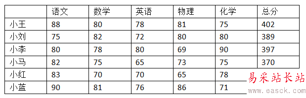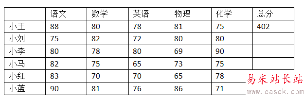 4、其他同學的總分我們可以通過一個簡便的辦法將其計算得出,我們將小王的總分進行復制,然后粘貼到其他同學的總分處;