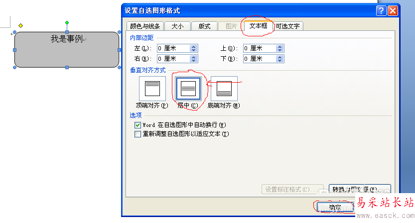 在word中自選圖形中添加的文字,發現有時無法垂直居中,自選圖形設置中文本框一為灰色無法選擇!可能是高版本office軟件以兼容模式打開的原因,如word2007打開doc格式文件~