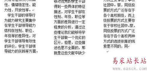 4、這樣文檔分為了三欄,在第三欄上你可以看到,文檔末尾由于沒有了文字,片空白,我們怎樣去掉該空白,讓文字在三欄中平均分布呢