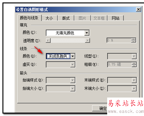 6、雙擊此正圓,彈出的操作框;在“線條顏色”這里的三角點下,彈出的菜單中點“無線條顏色”;