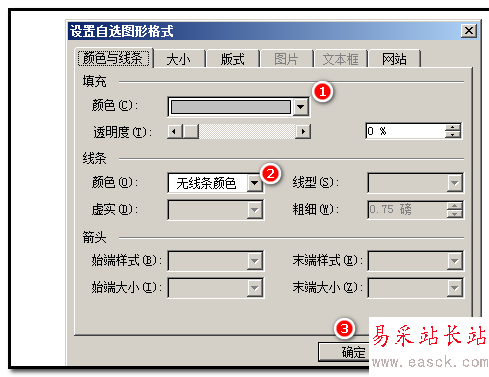 3、雙擊圖形;彈出的操作框中,在填充顏色這里點下三角;彈出的顏色選項中點“灰色-25%”;在線條顏色這里設置為無線條顏色。再點確定。