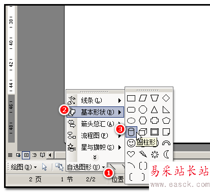 1、新建文檔;在文檔繪圖工具欄中點“圓柱形”;