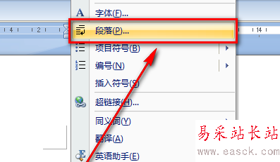 2、在該行文本中點擊鼠標右鍵,選擇【段落】。