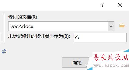 分別在原文檔和修訂的文檔中,選中兩個文檔內容(無所謂順序),例子中甲寫的部分為Doc1.docx,乙寫的部分為Doc2.docx,點擊確定。