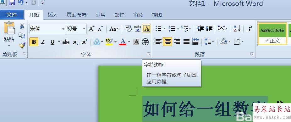 4、鼠標上移到功能區,選擇字符邊框,如圖