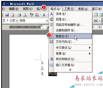 3、然后,在文檔上方的命令欄中順序點:格式-制表位;