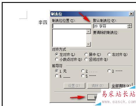 9、一按Tab鍵后,一下子,文檔中的“李四”中的“四”即移到了如下圖所示的位置。