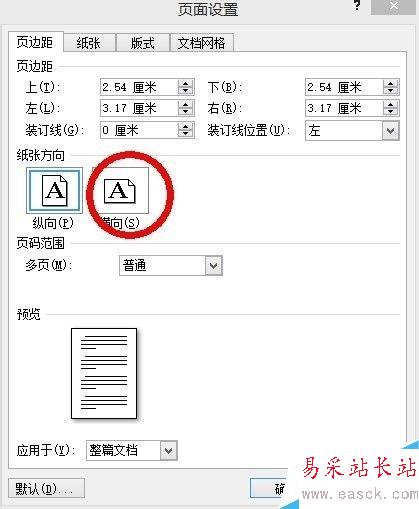 4、在彈出的對話框中選擇橫向