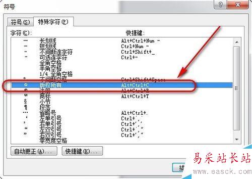6、第六步,在“特殊字符”選中“版權(quán)所有”