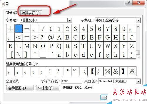 5、第五步,彈出對(duì)話框中,點(diǎn)擊“特殊字符”