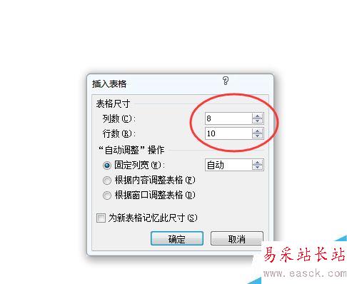 3、我們可以看到,這里有列數和行數的選擇,我們把列數設為8,行數設為10,然后確定。