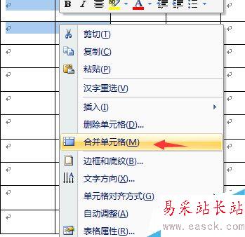 5、我們選擇四個單元格,然后右鍵點擊,然后選擇合并單元格,然后就成了下圖的樣子,合并單元格成功。
