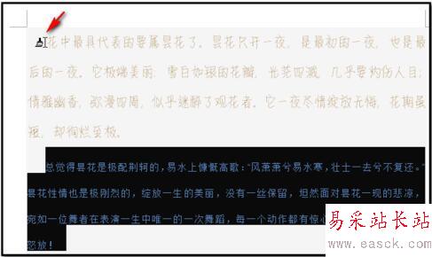 4.光標即多了一個格式刷的圖標,然后,光標放在第一段落的開始位置;