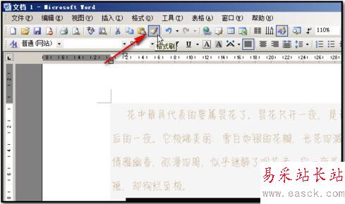 9.然后,在文檔上方的工具欄中點“格式刷”工具;