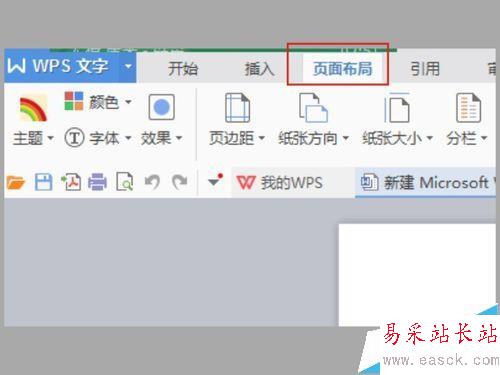 2、進入“wps文檔”頁面后,在“開始”一欄點擊“頁面與布局”,如圖所示
