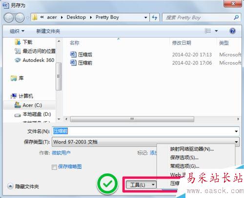 2、在另存為窗口點擊工具,選擇壓縮圖片。