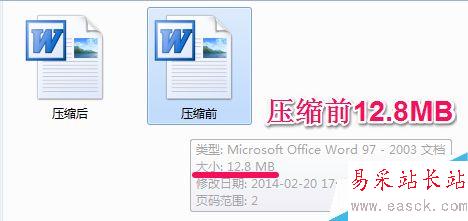 4、小編保存給大家看一下壓縮前和壓縮后的Word文檔大小。