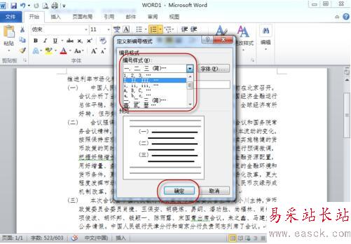 8.跳出來“定義新編號格式”對話框,在“編號樣式”中查找需求的編號,如圖