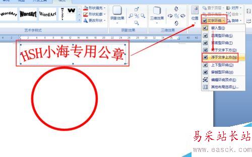 這樣【藝術字】就可以拉到【橢圓】形狀中去了。如下圖所示: