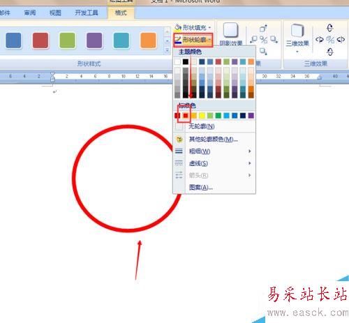 在【形狀輪廓】-【顏色】填充為紅色。如下圖所示: