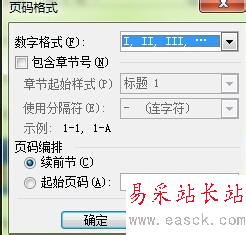 7、之后,我們在第四頁或者第五頁插入頁碼,在頁眉和頁腳工具欄中我們發(fā)現(xiàn),其中鏈接到前一個(gè)按鈕呈按下狀態(tài)(之前是不可點(diǎn)擊的),我們點(diǎn)擊一下,會(huì)出現(xiàn)下圖對話框,我們選“是”,然后,在選擇頁碼格式時(shí),把續(xù)前頁選項(xiàng)去掉,勾選起始頁碼,然后讓頁碼從1開始,然后點(diǎn)擊確定。這時(shí)候你會(huì)發(fā)現(xiàn),前三頁的頁碼是按照大寫的Ⅰ、Ⅱ、Ⅲ排列的,而后兩頁的頁碼是從按照1,2從頭排列的,很神奇吧。