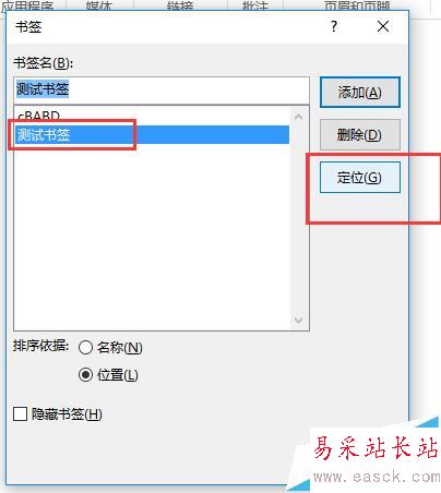 2、添加標簽,word會自動在光標處添加一個書簽,word默認書簽是隱藏的。如果想看到這個書簽是在哪一行,在列表中找到書簽,選擇定位即可,word會自動將光標置于書簽處。
