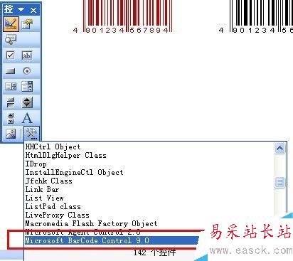 7、在“控件工具箱”菜單欄里選擇控件“Microsoft BarCode Control 9.0”