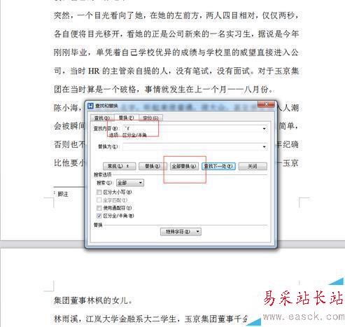 然后替換上方的查找內(nèi)容就會(huì)邊長(zhǎng)如圖所示的符號(hào),然后點(diǎn)擊全部替換即可。