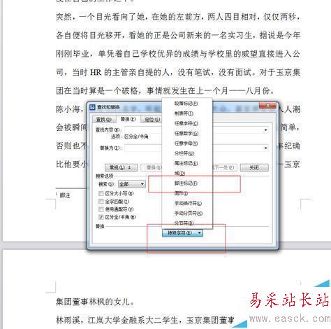 之后對(duì)話(huà)框下面會(huì)彈出一欄,然后找到特殊符號(hào),點(diǎn)擊,然后會(huì)列出各種符號(hào),選擇腳注或者尾注,點(diǎn)擊。