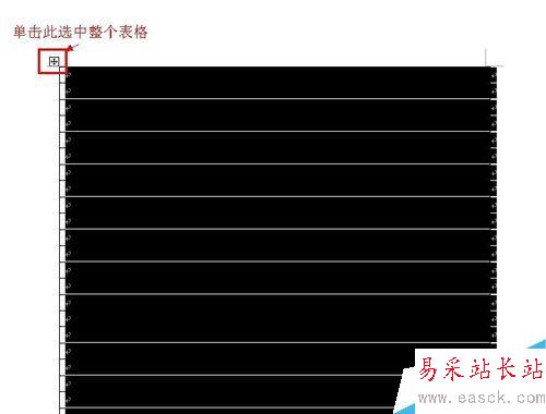 3、單擊表格,表格左上角出現類似“十”字的標志,單擊此標志選中整個表格。