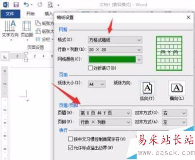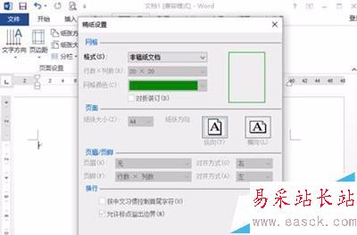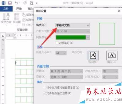 4、點擊稿紙設置選項后,這個時候會打開稿紙設置對話窗口。