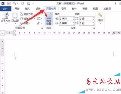 3、在新建的空白Word文檔編輯窗口,打開標題菜單欄的“頁面布局”選項卡,然后再點擊稿紙分區功能區的“稿紙設置”選項。