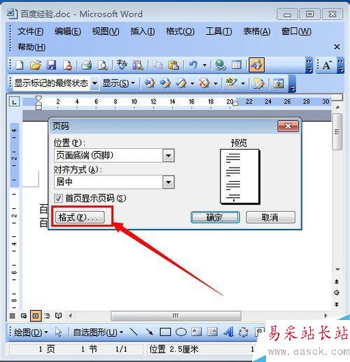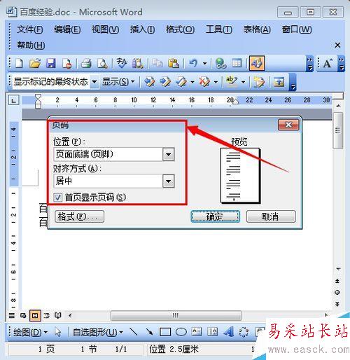 4、在頁碼的設置窗口里設置好位置和對其方式 如圖