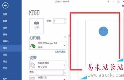 3、接著我們再點擊“文件”選項命令,在文件選項命令窗口中,將選項卡切換到“打印”。在打印預覽窗口并沒有看到我們插入的圖形。