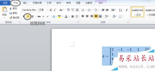 8、當矩陣中存在字母的時候,可以選中整個公式,在“開始”選項卡下的“字體”菜單里選擇加粗。