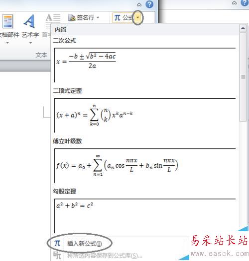 2、如果點擊了下拉菜單,則選擇“插入新公式”選項。