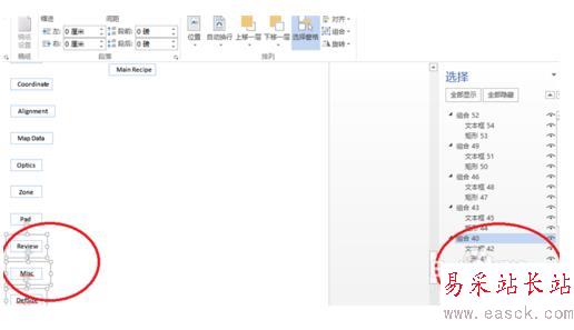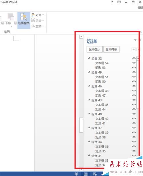 5、例如,鼠標單擊選擇組合52中的文本內容,點擊右側的小眼睛