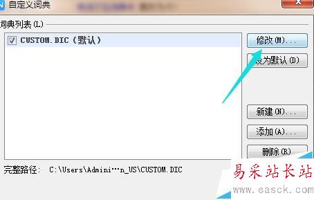 7、這時候會出現新的窗口,點擊“修改”,然后在詞匯中輸入不正規的英文單詞,點擊添加,這樣以后再出現這些單詞的時候就不會提示紅波浪線了。