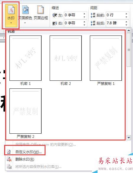 點擊word水印功能,在打開的word水印功能中,找到word自定義水印,就能進入word自定義水印功能管理了。