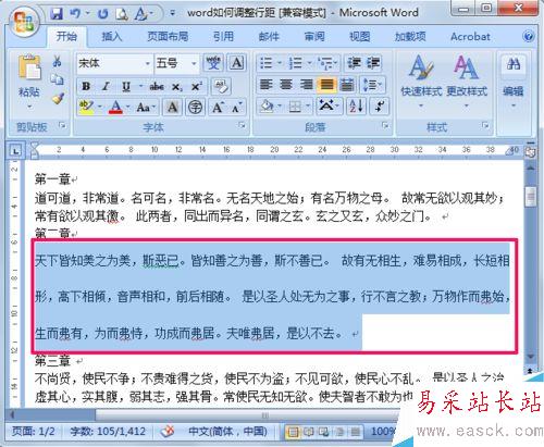 1、首先選中要調(diào)整行距的文本。