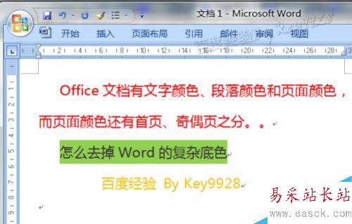 平時我們上網看到喜歡的文字可能喜歡復制到word中,但可能發現很多的顏色,想改也改不下。其實如果你對Office比較熟悉,則你應該也知道Office文檔有時會叫做word頁等,而頁又有段落組成,段落又有文字組成,所以Office文檔也一樣,顏色(底色)有文字底色、段落底色和頁面義勇色之分,而頁面顏色還有首頁、奇偶頁之分等等。而如何去判別和設置這些顏色的組合應用呢?