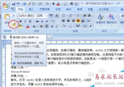 再單擊或雙擊“開始”選項卡上的“格式刷”按鈕(單擊或雙擊的區別是什么):
