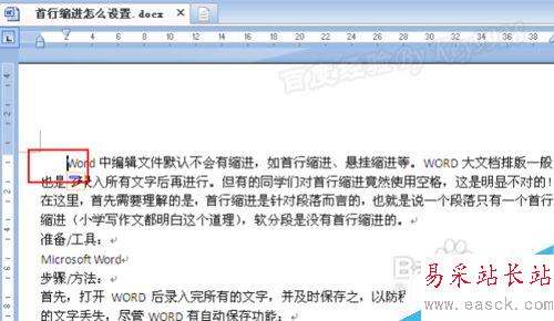 然后再將鼠標光標定位到需要首行縮進的位置,接鍵盤上的Tab制表鍵一次: