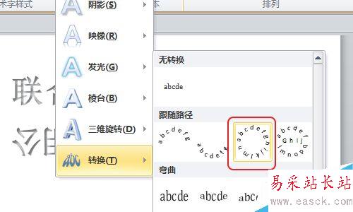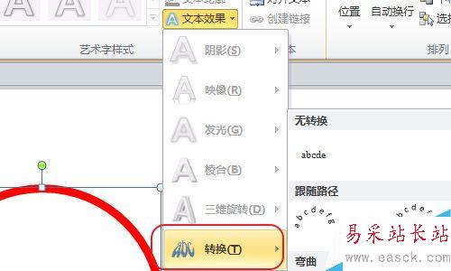 5、如下圖將藝術(shù)字外形設(shè)置為圓形