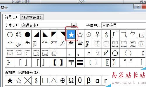 8、你也可以通過(guò)插入符號(hào)功能,插入一些特殊的符號(hào)如下圖所示,這里插入一個(gè)五角星符號(hào)