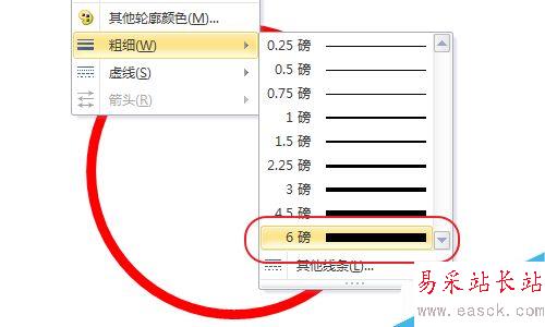 3、設(shè)置圓形的外框?yàn)榧t色,并修改其線條寬度,同時(shí)設(shè)置填充色為無(wú)色