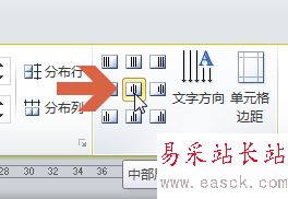 6、如果更改文字方向后表格內的文字偏向一側。可以點擊圖中布局選項卡中的居中按鈕對文字進行居中。