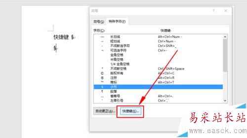 5、選中這個字符,然后點擊【快捷鍵】按鈕。進入對“§”的設置面板