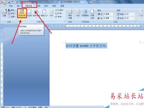 2、執(zhí)行“頁(yè)面布局→文字方向”命令